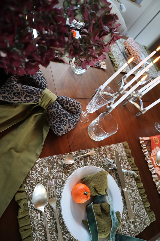 Set de table réversible - Léopard jacquard & fleurs 70’s