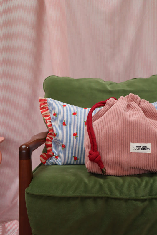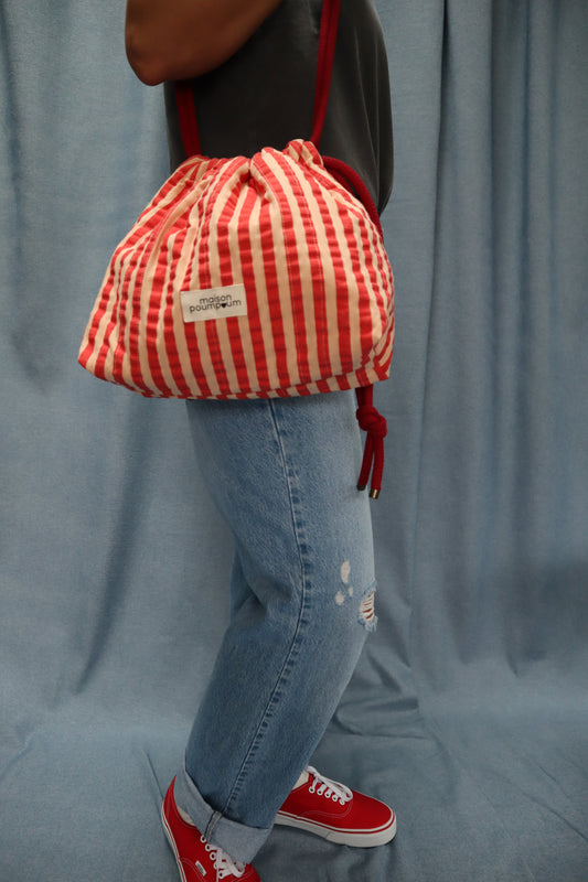 Mini sac bourse à cordon - Seersucker rayure rouge – Maison Poumpoum