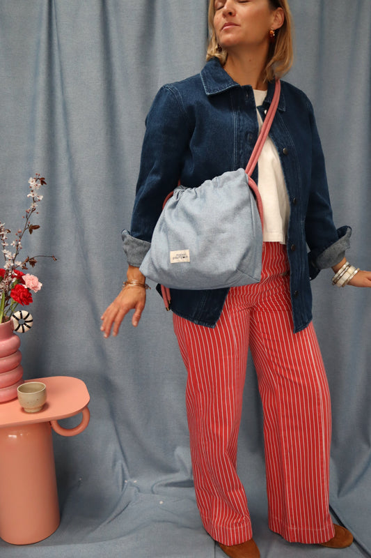 Mini sac bourse à cordon - Jean brut – Maison Poumpoum