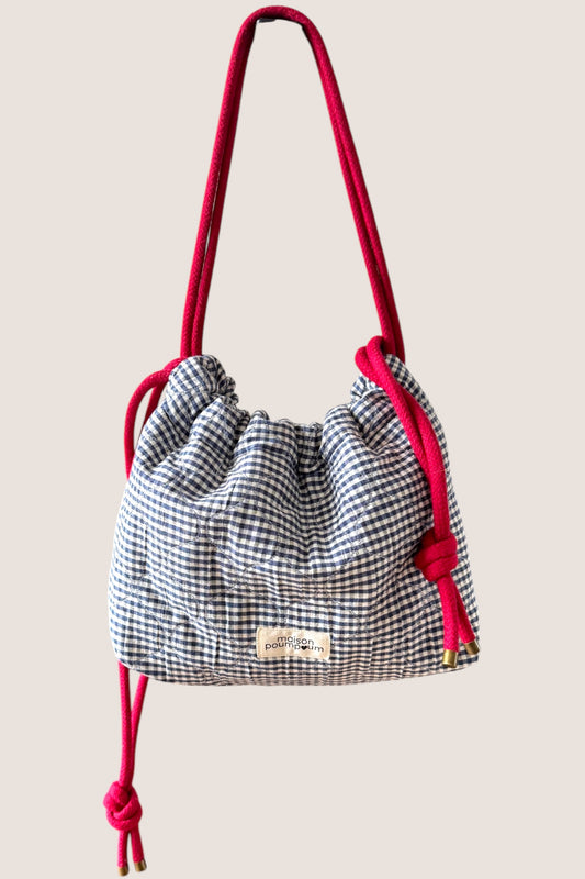 Mini sac bourse à cordon - Vichy bleu marine – Maison Poumpoum