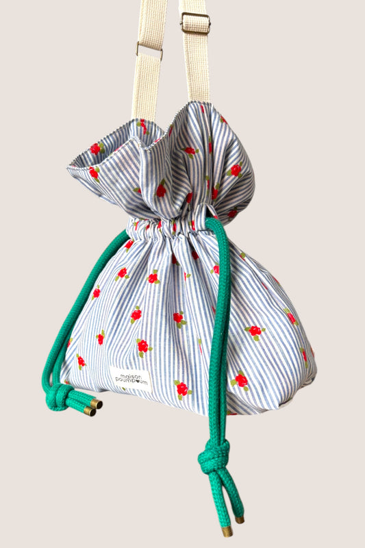 Mini sac bourse à cordon - Jacquard rayures fleuries – Maison Poumpoum