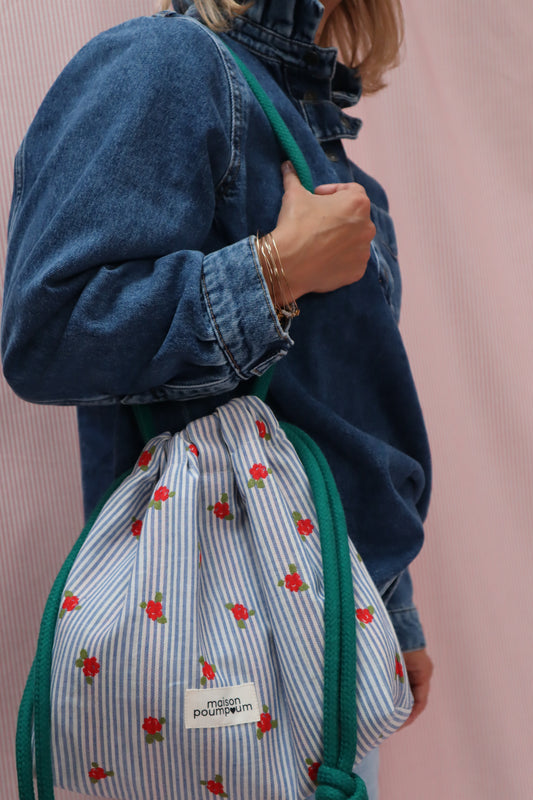 Sac Bourse Rayures fleuries – Maison Poumpoum