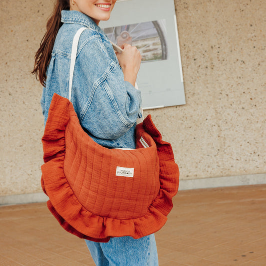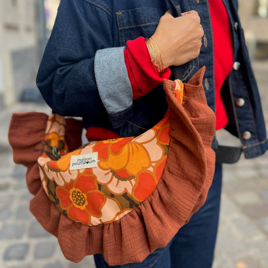 Sac Demi-Lune – Coton fleuri 70’s et Froufrous