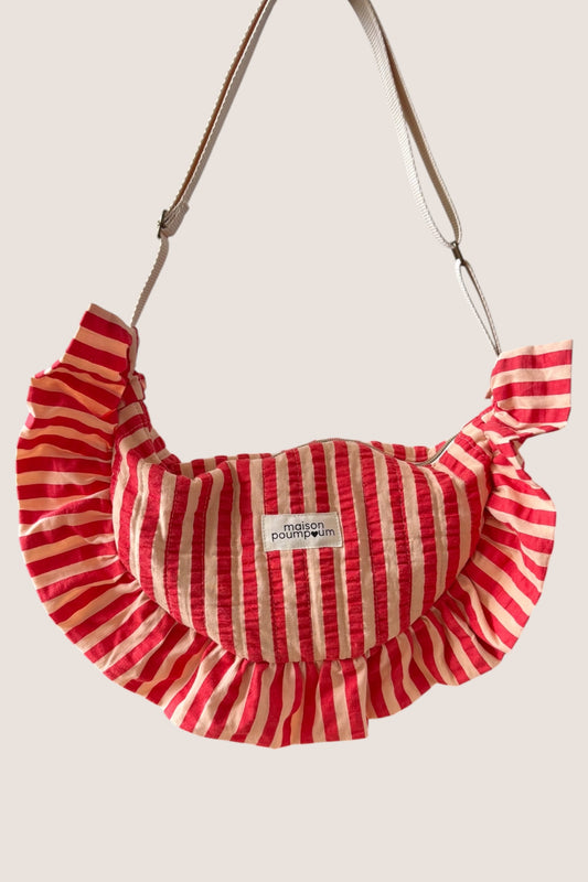 Sac Demi Lune à froufrous - Rayure rouge - Maison Poumpoum