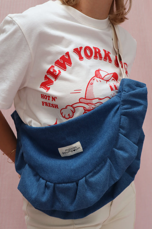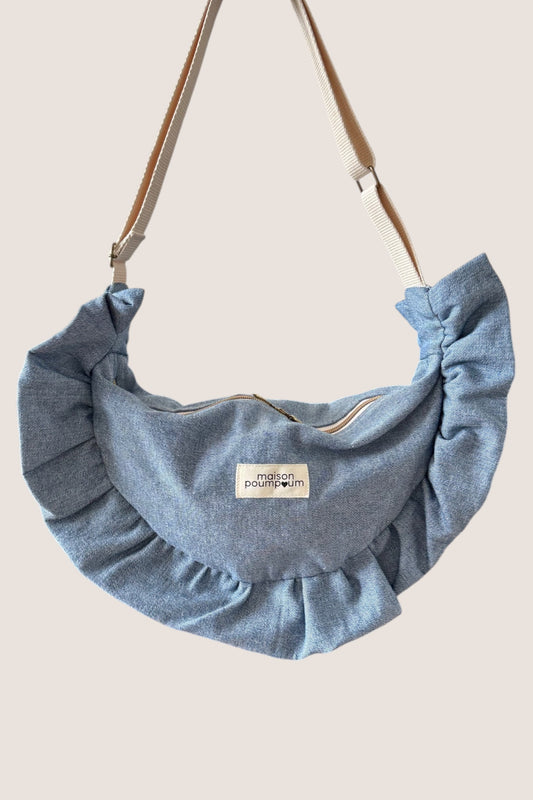 Sac Demi Lune à froufrous - Jean brut - Maison Poumpoum