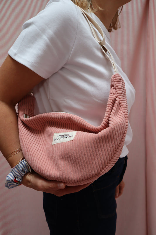 Sac Demi Lune velours - vieux rose - Maison Poumpoum