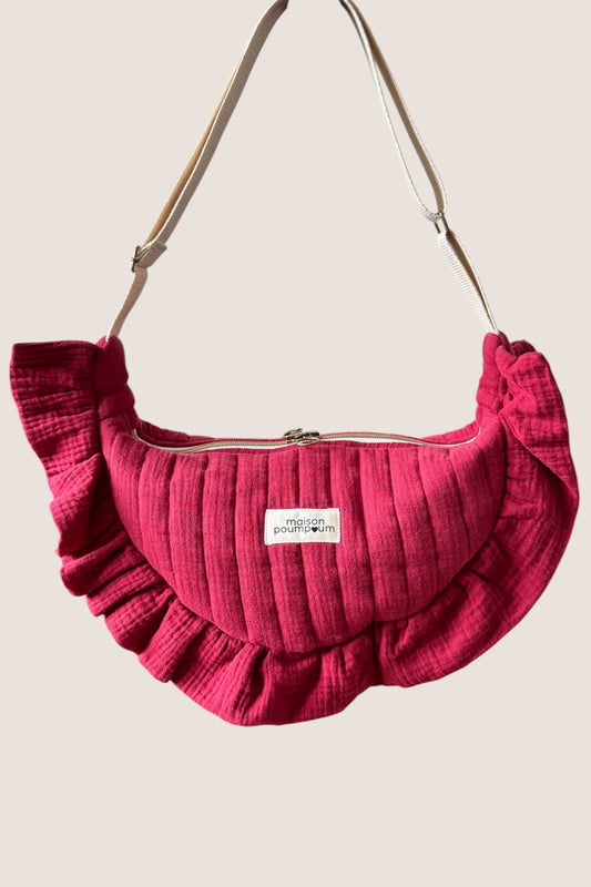 Sac Demi Lune à froufrous - Gaze de coton bordeaux - Maison Poumpoum