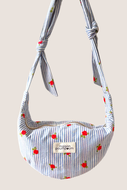 Sac Demi Lune - Jacquard rayures fleuries - Maison Poumpoum
