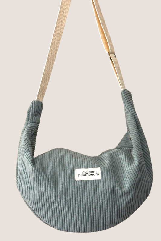 Sac Demi Lune velours - Bleu ciel - Maison Poumpoum