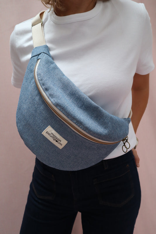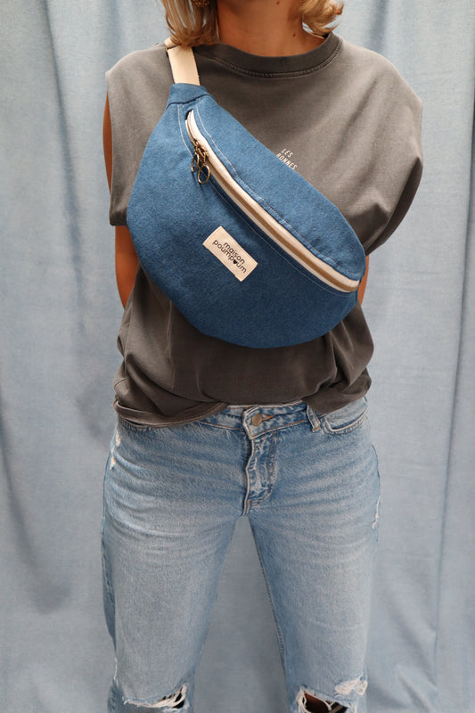 Sac banane Jean brut – Denim bleu - Maison Poumpoum