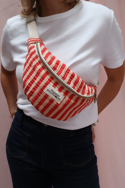 Sac banane rayures rouges – Seersucker matelassé – Maison PoumPoum