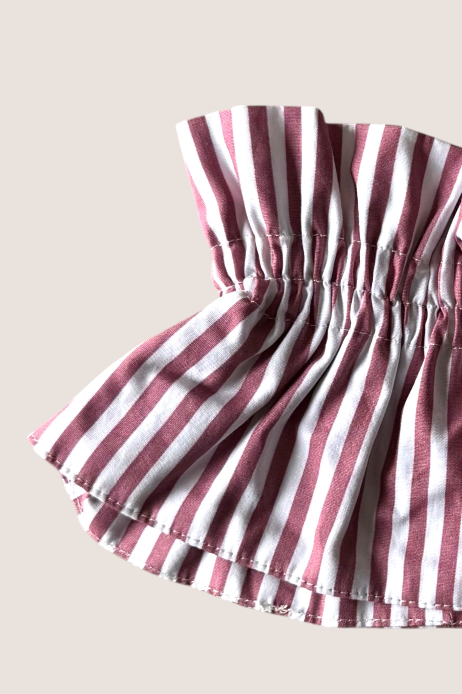Apportez une touche chaleureuse et originale à vos tenues avec notre col amovible à rayures bordeaux, confectionné à partir de nos chutes de tissus. Une manière élégante de sublimer votre look…