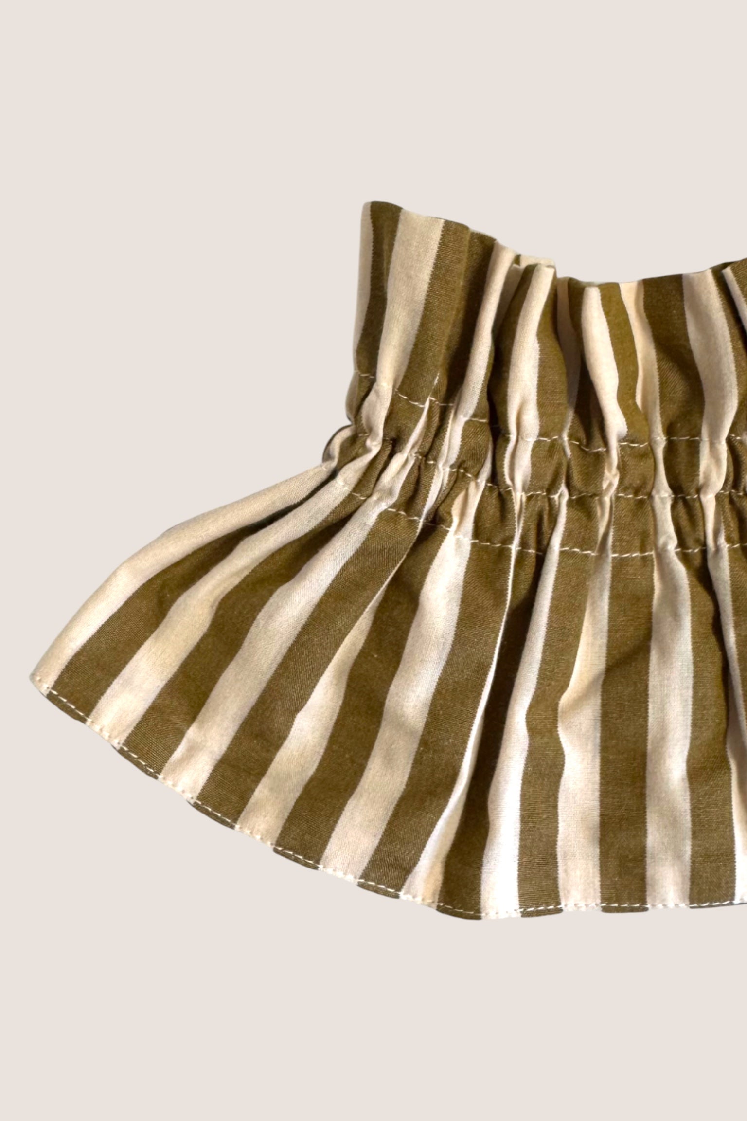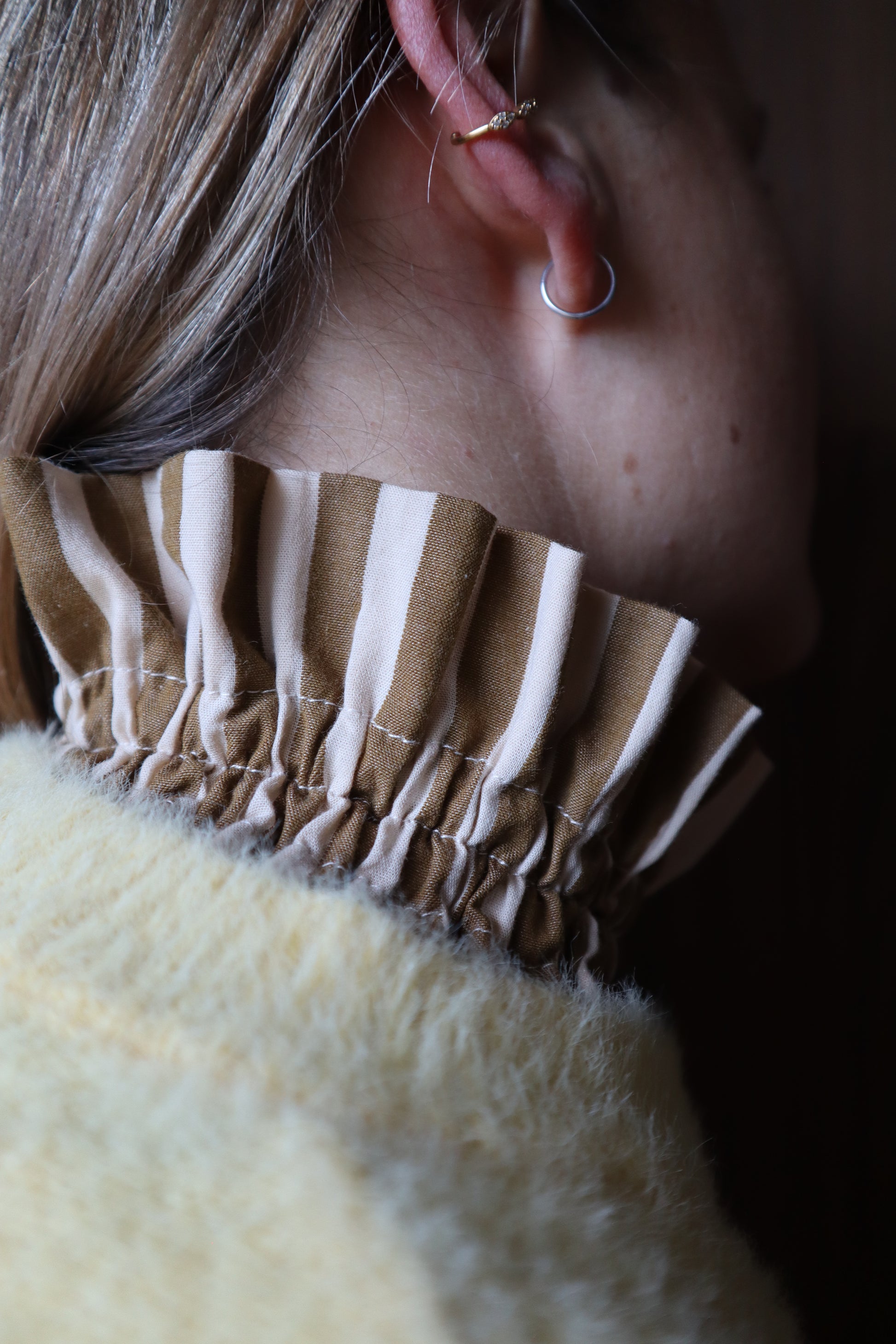 Apportez une touche chaleureuse et originale à vos tenues avec notre col amovible rayure kaki, confectionné à partir de nos chutes de tissus. Une manière élégante de sublimer votre look…