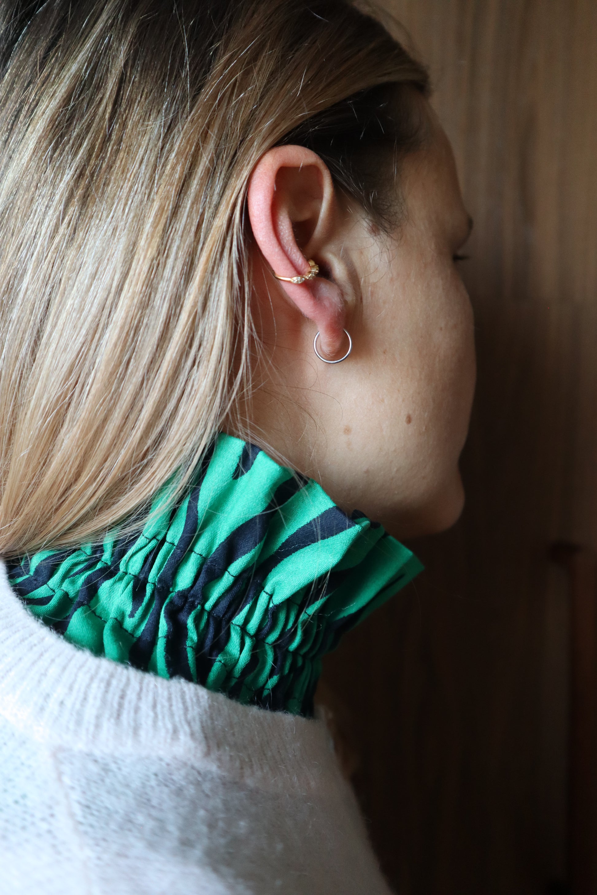 Apportez une touche chaleureuse et originale à vos tenues avec notre col amovible zèbre vert, confectionné à partir de nos chutes de tissus. Une manière élégante de sublimer votre look…