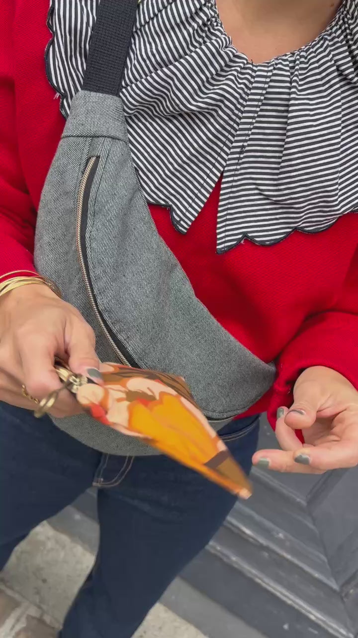 Sac Banane en Jean Gris Chiné – Sobriété urbaine & style intemporel