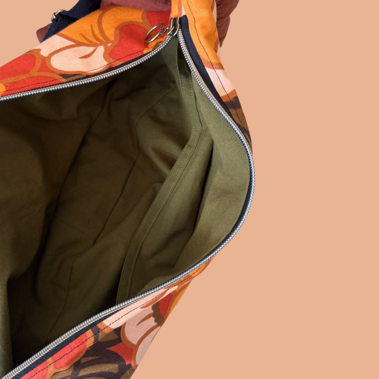 Sac Demi-Lune – Coton fleuri 70’s et Froufrous