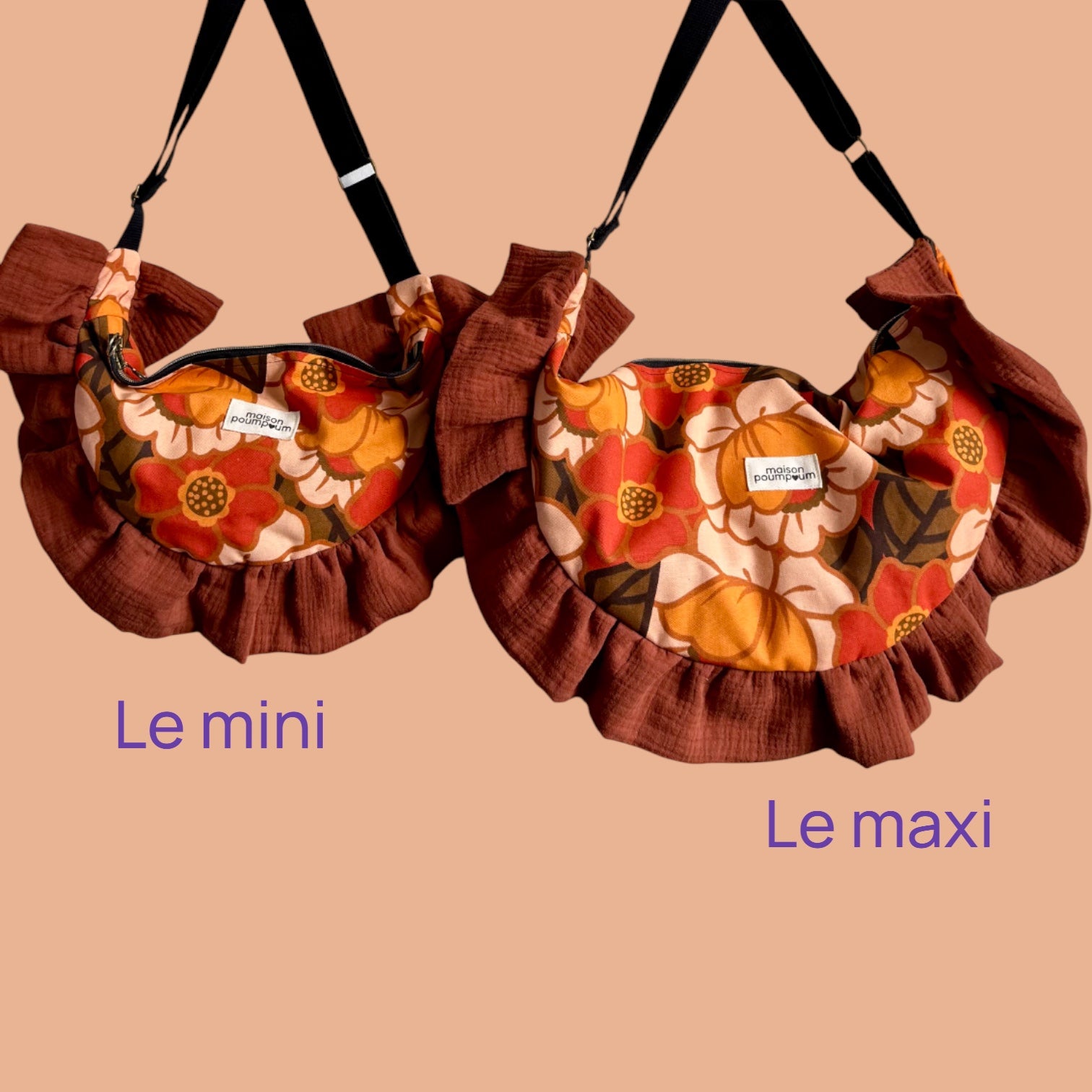 Sac Demi-Lune Mini – Coton fleuri 70’s & Froufrous