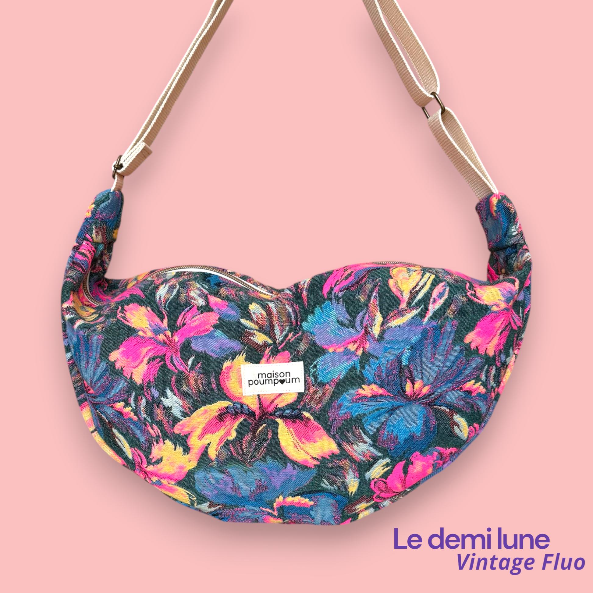 Le sac demi-lune Fleuri Vintage Fluo – Le sac qui ne passe pas inaperçu